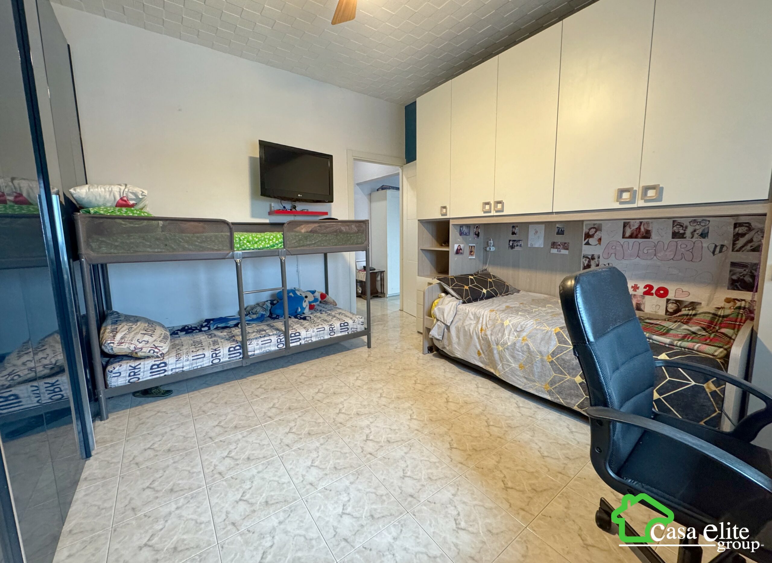 Il disimpegno notte conduce alla camera matrimoniale, ampia e ben proporzionata, ideale per creare un ambiente confortevole e accogliente. Completa la zona, il bagno finestrato, anch’esso completamente ristrutturato, dotato di box doccia moderno e finiture contemporanee.