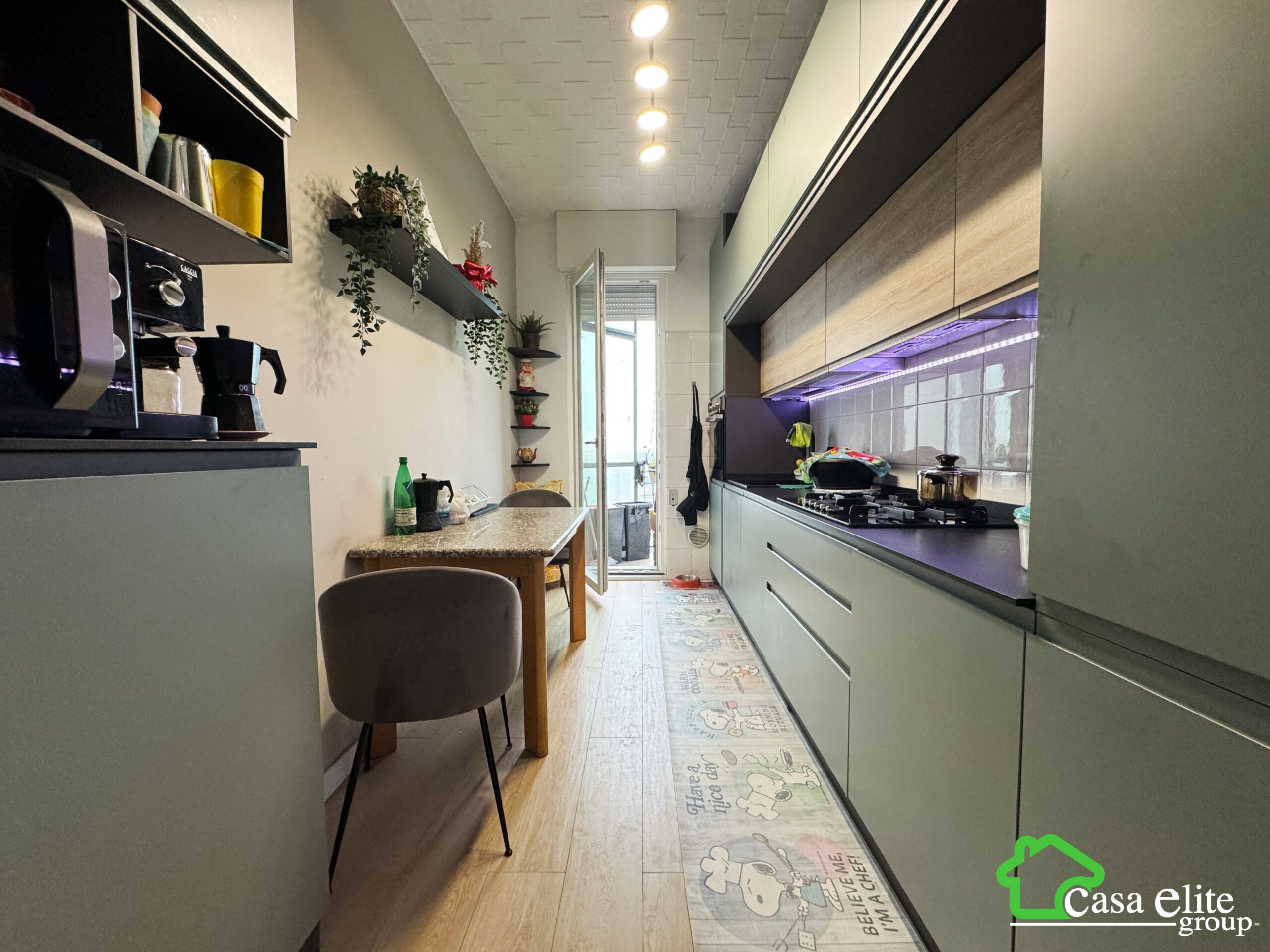 All’ingresso ci accoglie il disimpegno che conduce alla zona giorno, dove troviamo la cucina abitabile, moderna e recentemente ristrutturata, con accesso diretto al balcone spazioso, il soggiorno di generose dimensioni perfettamente proporzionato per accogliere sia una comoda zona relax che una zona pranzo, anch’esso dotato di accesso sul balcone.