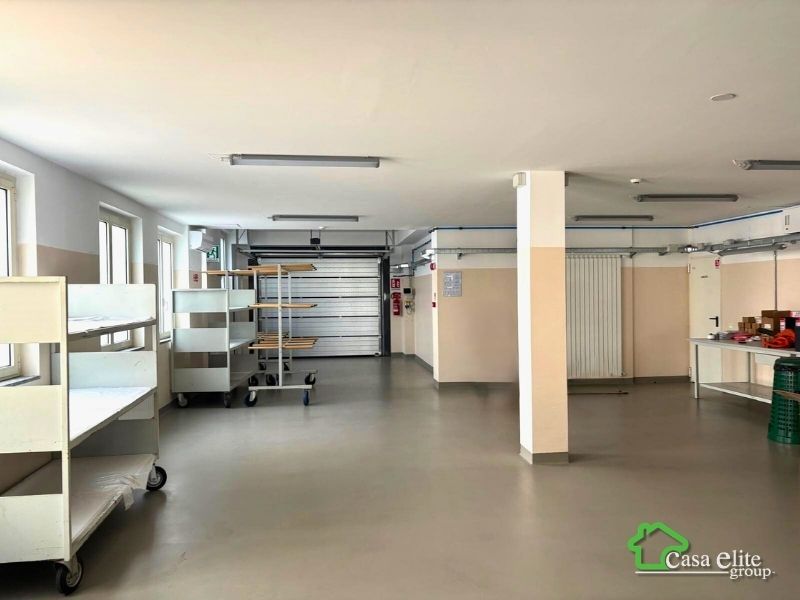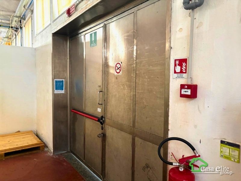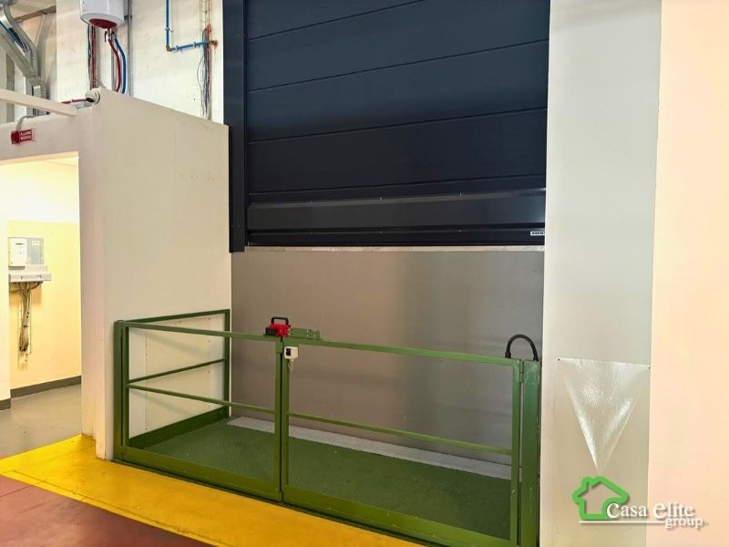 Proseguendo oltre il laboratorio si raggiunge l’accesso al capannone principale, situato al piano terra e collegato anche tramite montacarichi interno, soluzione comoda per il trasferimento di materiali tra i diversi livelli.