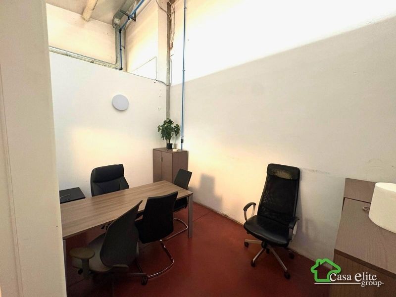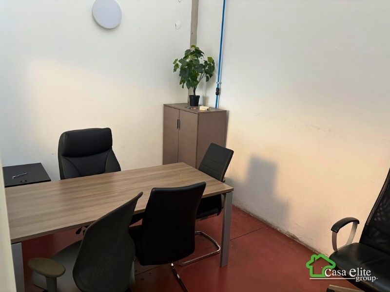 Dal secondo ingresso pedonale si accede al piano rialzato, dove si sviluppa la zona uffici e accoglienza. Qui troviamo un ingresso con reception, una sala d’attesa, una sala riunioni, un locale ristoro e doppi servizi. Dall’ingresso si accede inoltre a un primo laboratorio di circa 200 mq, dotato anche di un piccolo caveau, mentre sulla destra è presente un ufficio indipendente con bagno privato.