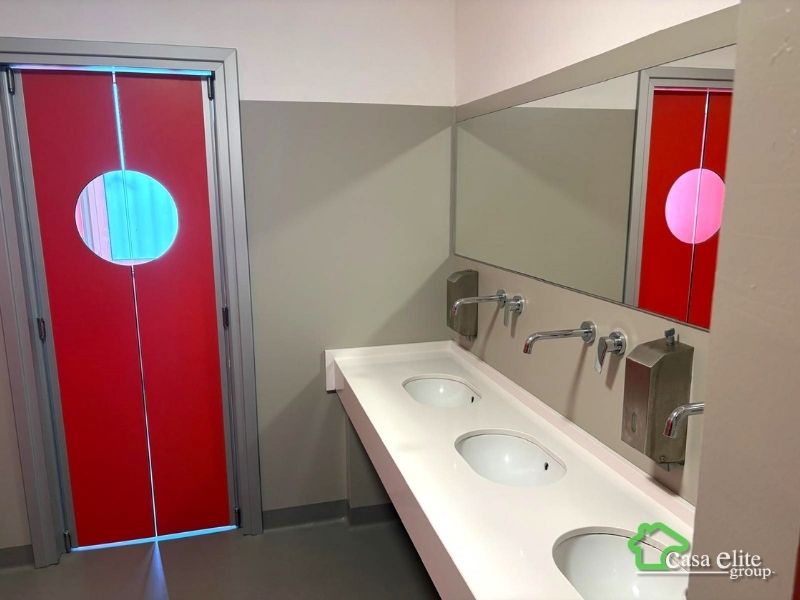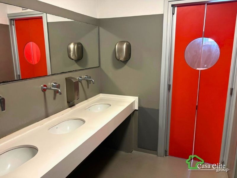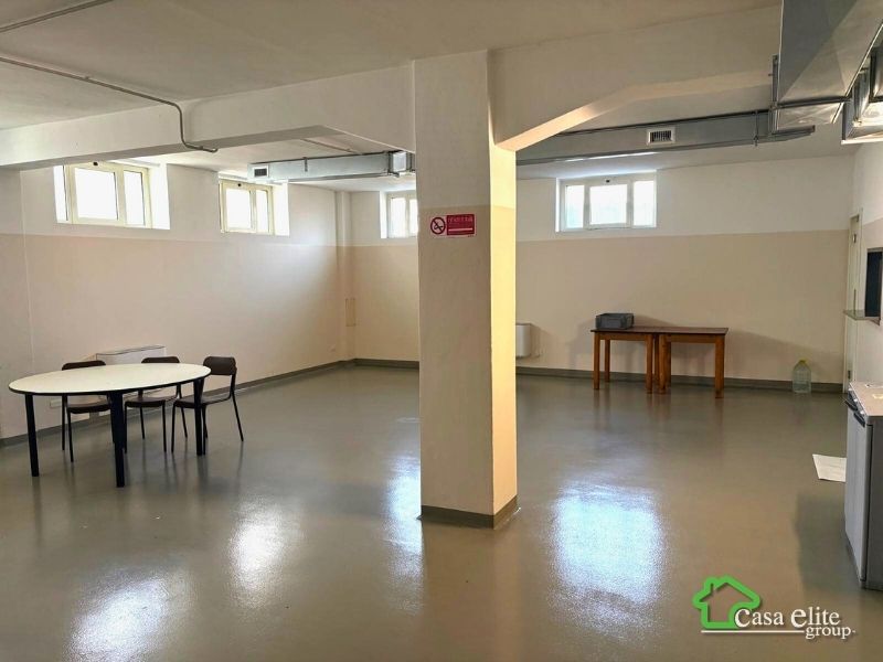 Al piano seminterrato si sviluppa un’ulteriore area operativa composta da un secondo laboratorio di circa 176 mq, oltre a un’ampia zona dedicata ai servizi aziendali. In questo livello troviamo infatti una grande mensa con locale dedicato, cucina separata per la preparazione dei pasti con bagno per gli addetti, locali per preparazione e conservazione alimenti, locali tecnici e spazi di servizio. Sono presenti inoltre spogliatoi uomini e spogliatoi donne, entrambi completi di servizi.