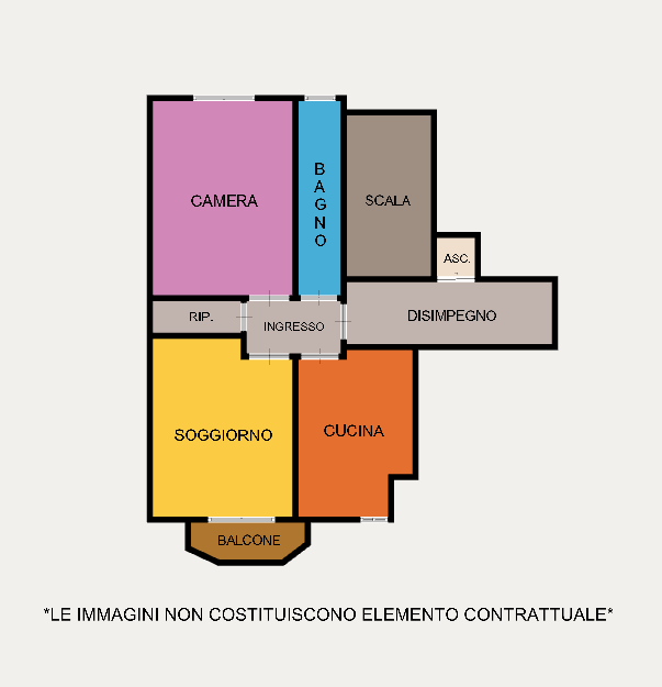 L’immobile è composto da un comodo disimpegno d’ingresso che conduce facilmente ai vari ambienti: un ampio soggiorno con balcone, una cucina abitabile, un bagno finestrato e una spaziosa camera matrimoniale.