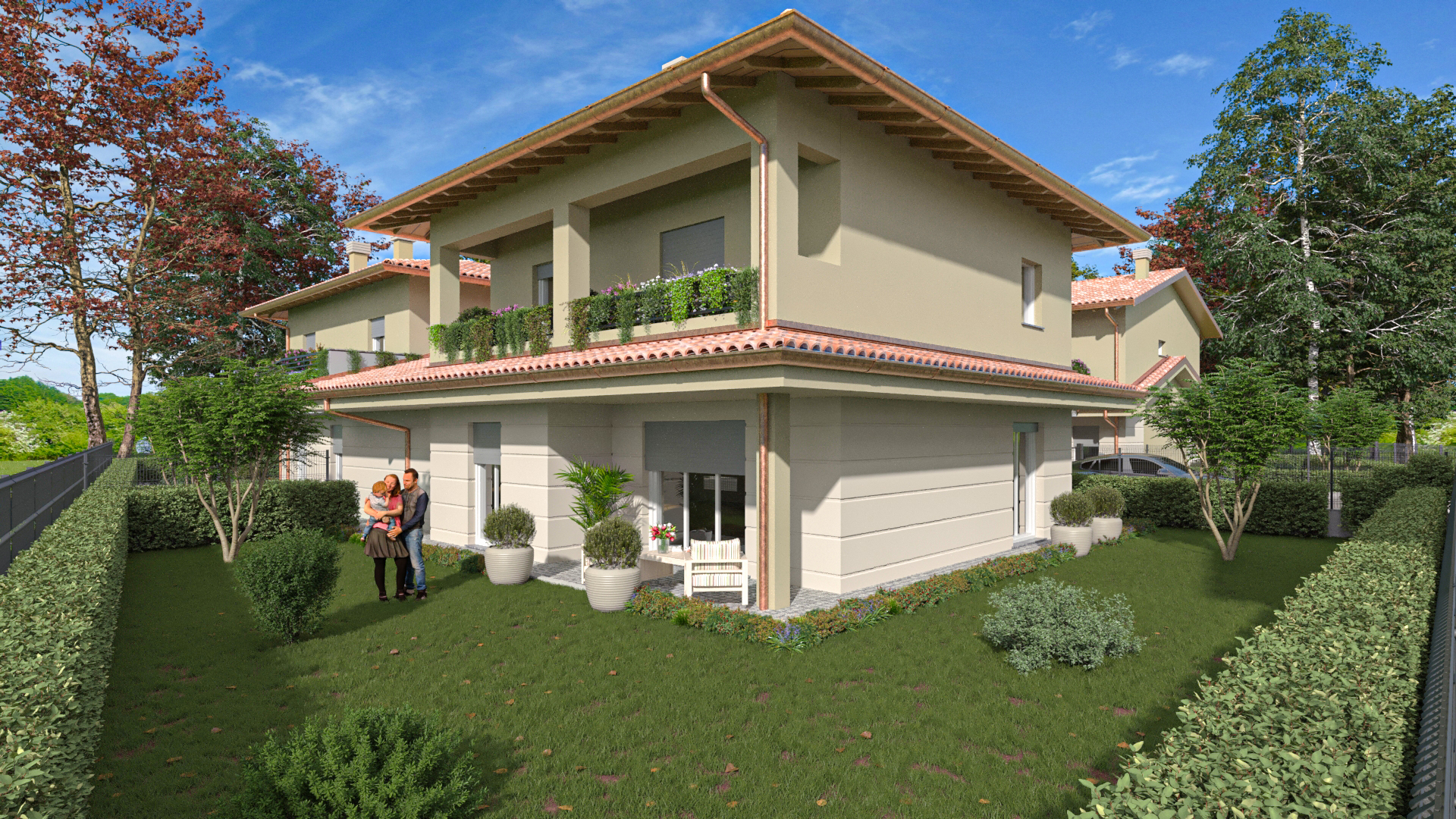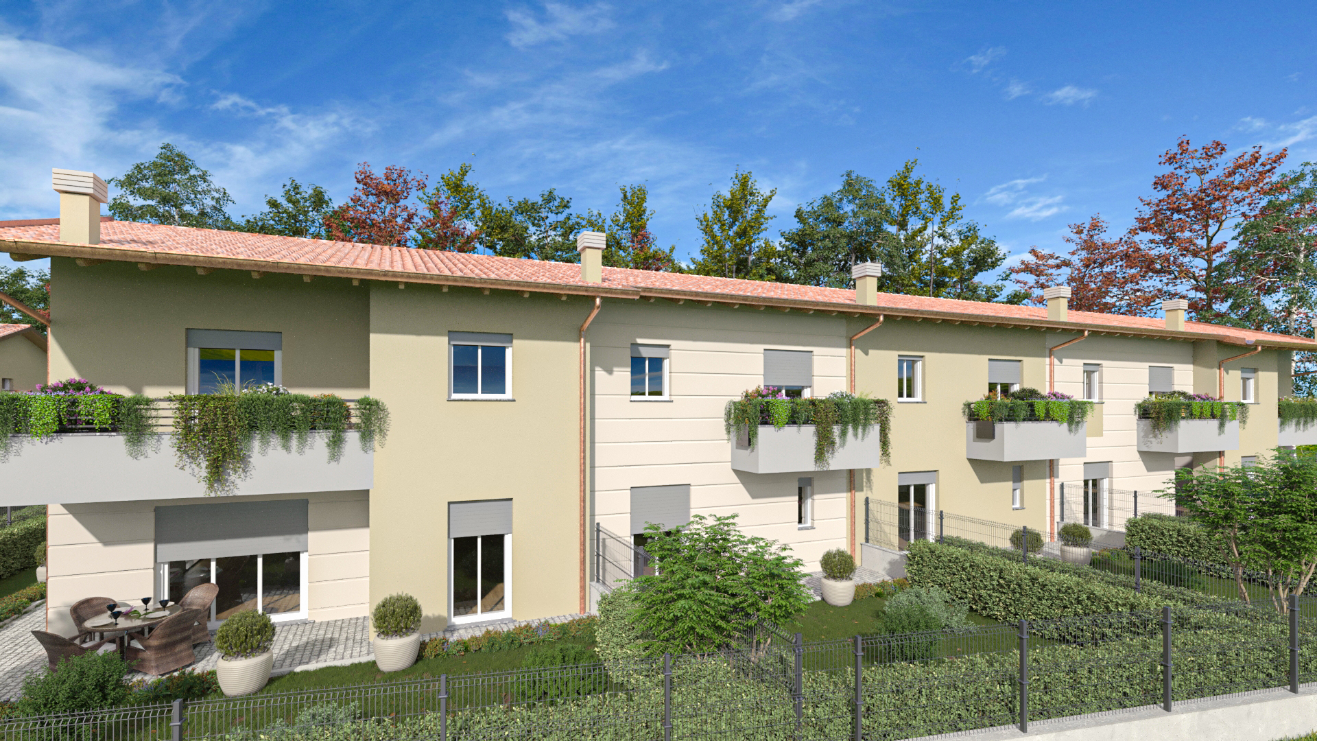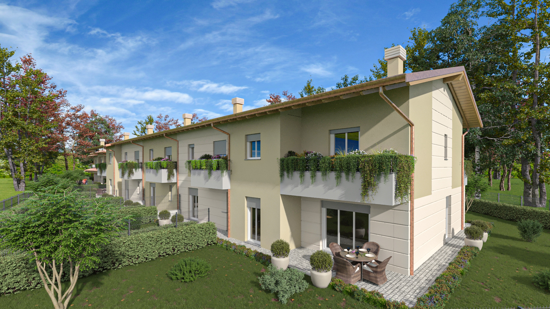 Le soluzioni, ideali per chi cerca comfort, indipendenza e qualità abitativa, sono dotate di giardino privato al piano terra e balcone al piano primo.