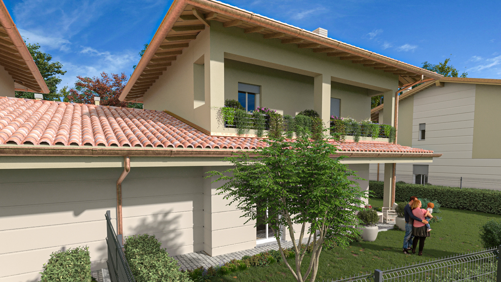 Le abitazioni sono realizzate in Classe energetica A1 o superiore, con impianti di ultima generazione: cappotto termico, pompa di calore autonoma per riscaldamento e raffrescamento, pannelli fotovoltaici e totale assenza di gas, per garantire massimo risparmio energetico e bassi costi di gestione.