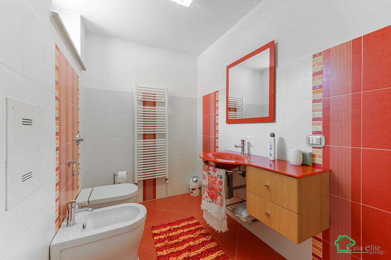 Il piano si completa con disimpegno, antibagno con lavabo, e un bagno finestrato con sanitari di design e doccia.