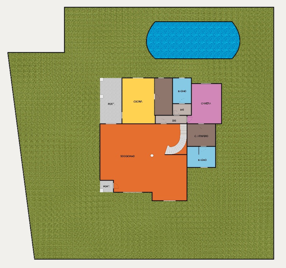L’immobile sorge su un lotto privato di circa 1.000 mq, con giardino piantumato di 500 mq, ampia area esterna attrezzata e splendida piscina interrata con spogliatoio e bagno dedicati.